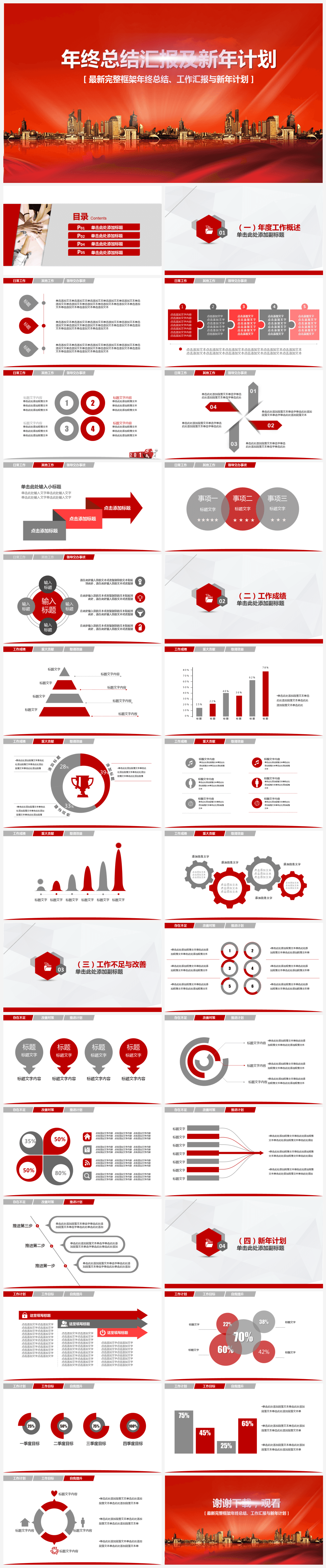 本作品内容为红色简约风年终总结汇报及新年计划PPT模板。 格式为 pptx, 大小10MB, 页数为31,比例16:9, 请使用软件PowerPoint打开, 作品中主体文字及图片可替换修改,文字修改可直接点击文本框进行编辑,图片更改可选中图片后单击鼠标右键选择更换图片,也可根据自身需求增加和删除作品中的内容, 源文件无水印, 欢迎使用发发资源库。 资源下载此资源下载价格为8.8F币,VIP免费,请先登录