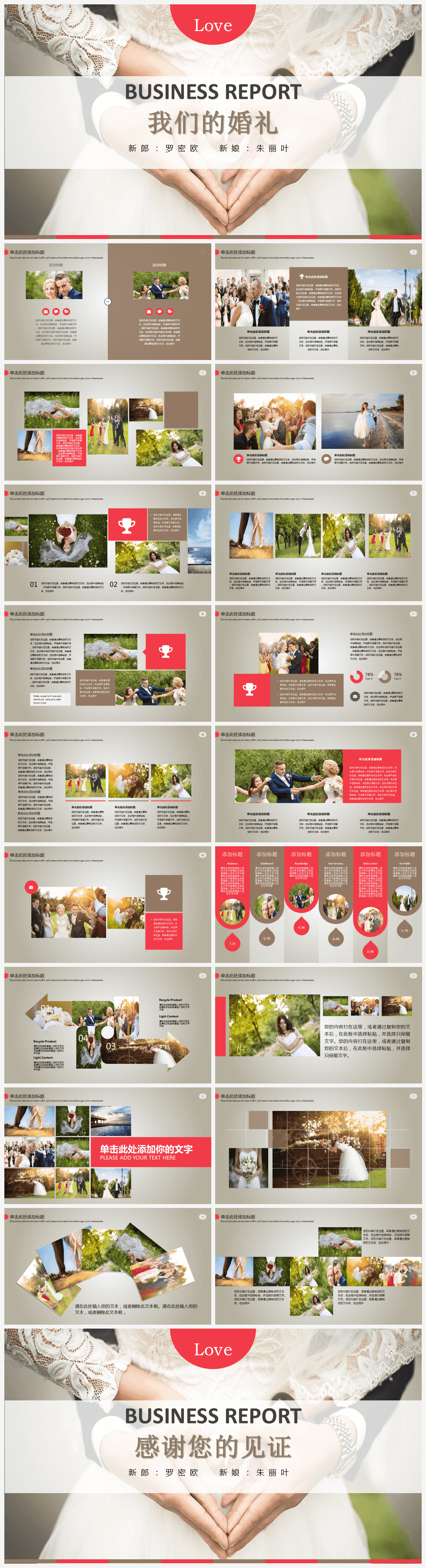 本作品内容为小清新我们的婚礼婚礼策划PPT模板。 格式为 pptx, 大小173MB, 页数为20,比例自定义, 请使用软件PowerPoint打开, 作品中主体文字及图片可替换修改,文字修改可直接点击文本框进行编辑,图片更改可选中图片后单击鼠标右键选择更换图片,也可根据自身需求增加和删除作品中的内容, 源文件无水印, 欢迎使用发发资源库。