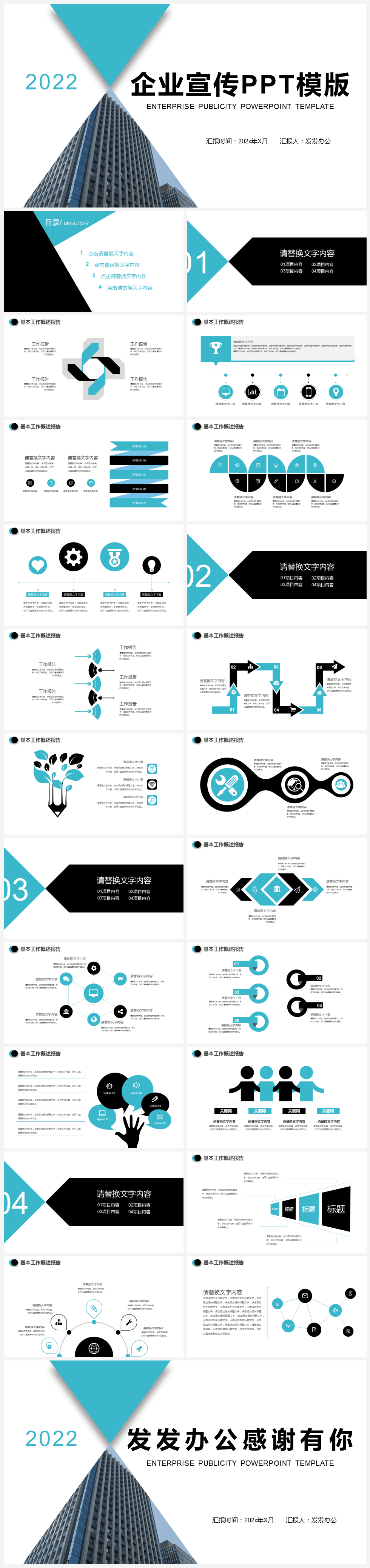本作品内容为黑蓝欧美风企业宣传通用PPT模板。 格式为 pptx, 大小6MB, 页数为24,比例自定义, 请使用软件PowerPoint打开, 作品中主体文字及图片可替换修改,文字修改可直接点击文本框进行编辑,图片更改可选中图片后单击鼠标右键选择更换图片,也可根据自身需求增加和删除作品中的内容, 源文件无水印, 欢迎使用发发资源库。 资源下载此资源下载价格为8.8F币,VIP免费,请先登录