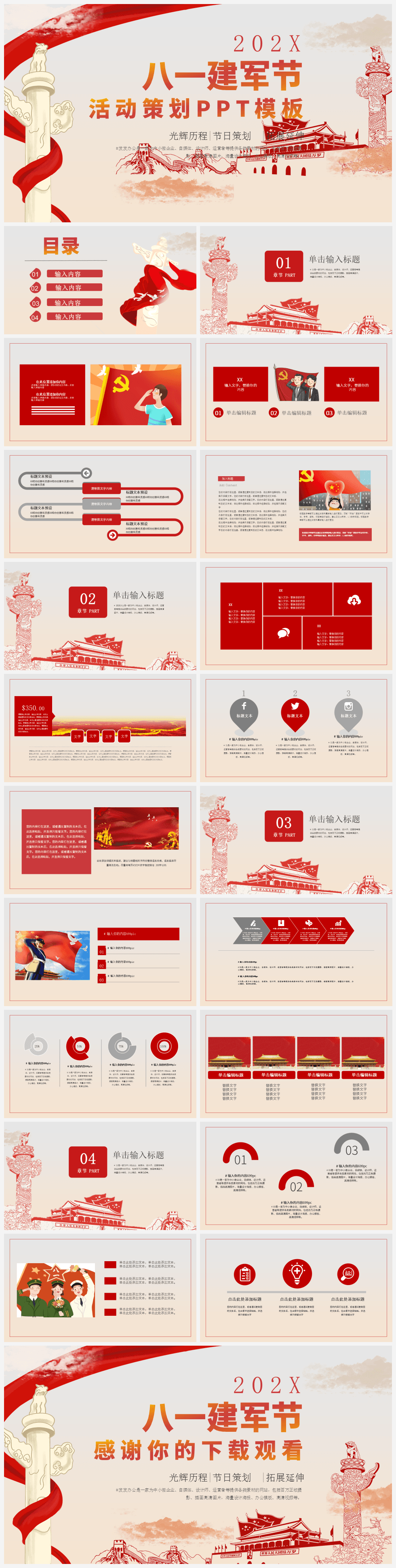 - 红色卡通风八一建军节活动策划PPT模板 2022-11-11