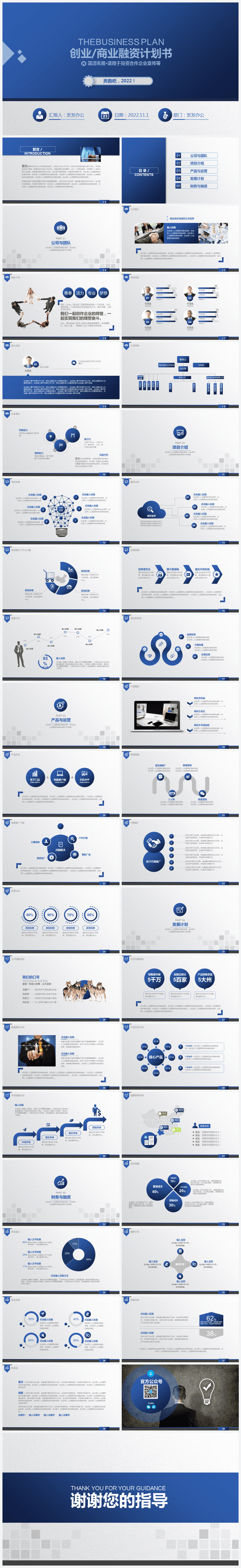 本作品内容为磨砂蓝色商务简约风创业商业融资计划书PPT模板。 格式为 pptx, 大小19MB, 页数为40,比例自定义, 请使用软件PowerPoint打开, 作品中主体文字及图片可替换修改,文字修改可直接点击文本框进行编辑,图片更改可选中图片后单击鼠标右键选择更换图片,也可根据自身需求增加和删除作品中的内容, 源文件无水印, 欢迎使用发发资源库。 资源下载此资源下载价格为8.8F币,VIP免费,请先登录
