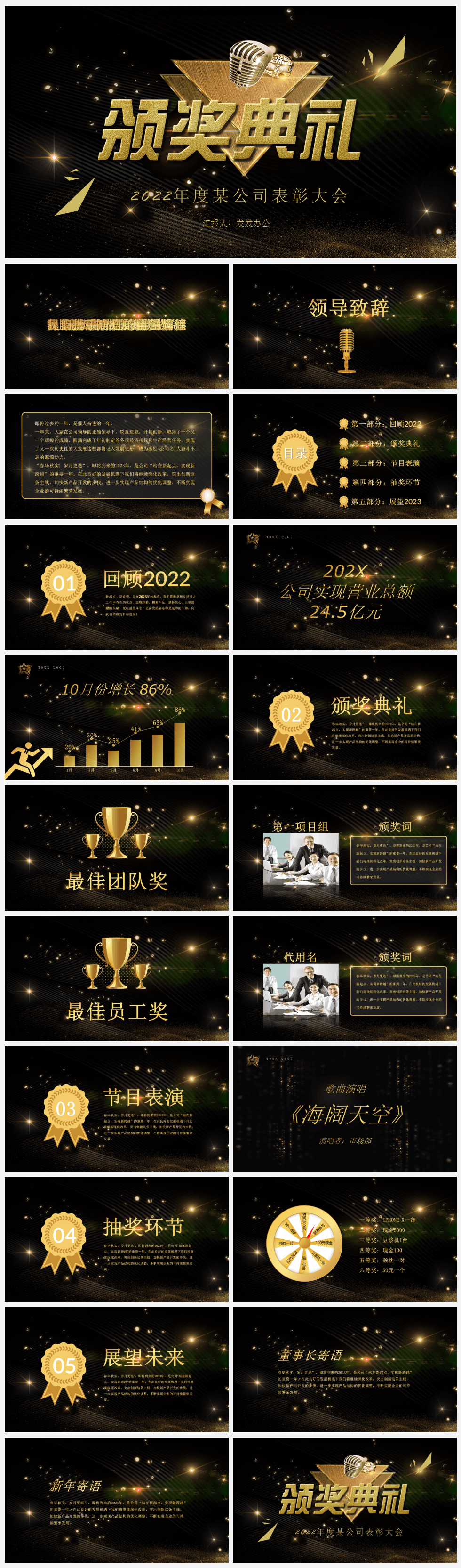 本作品内容为粒子光效黑色年度公司表彰大会颁奖典礼PPT模板。 格式为 pptx, 大小9MB, 页数为21,比例自定义, 请使用软件PowerPoint打开, 作品中主体文字及图片可替换修改,文字修改可直接点击文本框进行编辑,图片更改可选中图片后单击鼠标右键选择更换图片,也可根据自身需求增加和删除作品中的内容, 源文件无水印, 欢迎使用发发资源库。 资源下载此资源下载价格为8.8F币,VIP免费,请先登录