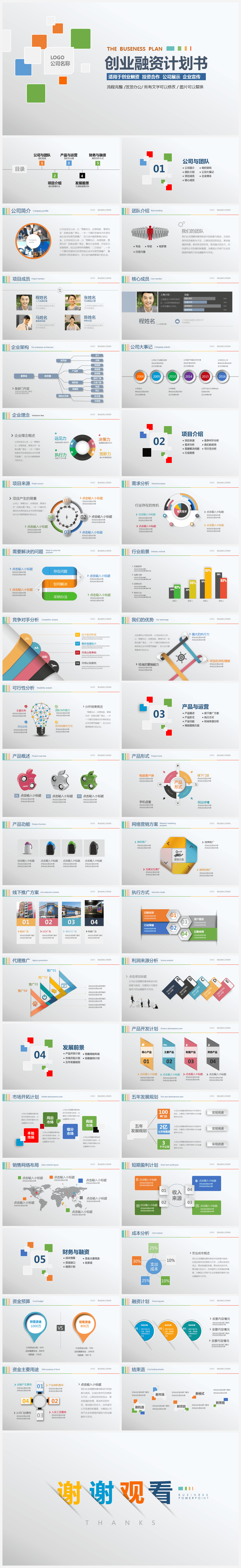 本作品内容为多彩简约风创业融资计划书PPT模板。 格式为 pptx, 大小35MB, 页数为40,比例自定义, 请使用软件PowerPoint打开, 作品中主体文字及图片可替换修改,文字修改可直接点击文本框进行编辑,图片更改可选中图片后单击鼠标右键选择更换图片,也可根据自身需求增加和删除作品中的内容, 源文件无水印, 欢迎使用发发资源库。