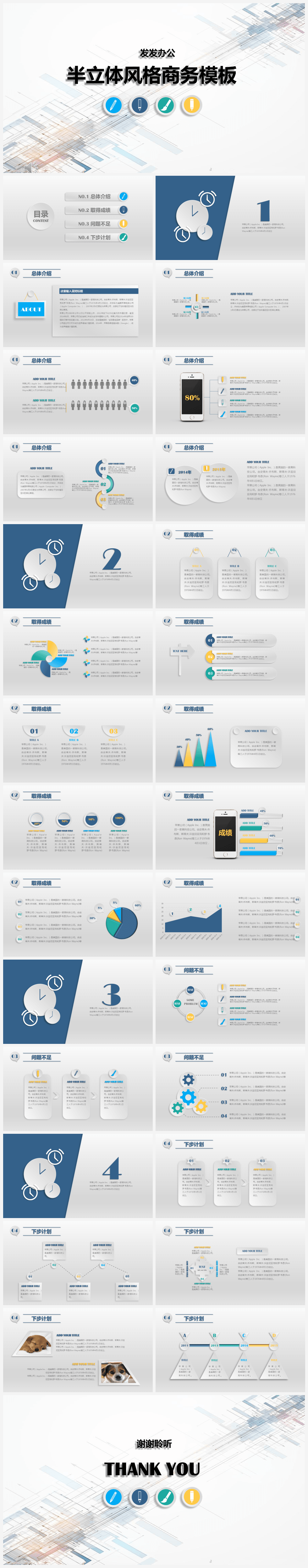 本作品内容为大气蓝色简约风微立体产品介绍商务通用PPT模板。 格式为 pptx, 大小5MB, 页数为30,比例自定义, 请使用软件PowerPoint打开, 作品中主体文字及图片可替换修改,文字修改可直接点击文本框进行编辑,图片更改可选中图片后单击鼠标右键选择更换图片,也可根据自身需求增加和删除作品中的内容, 源文件无水印, 欢迎使用发发资源库。 资源下载此资源下载价格为8.8F币,VIP免费,请先登录