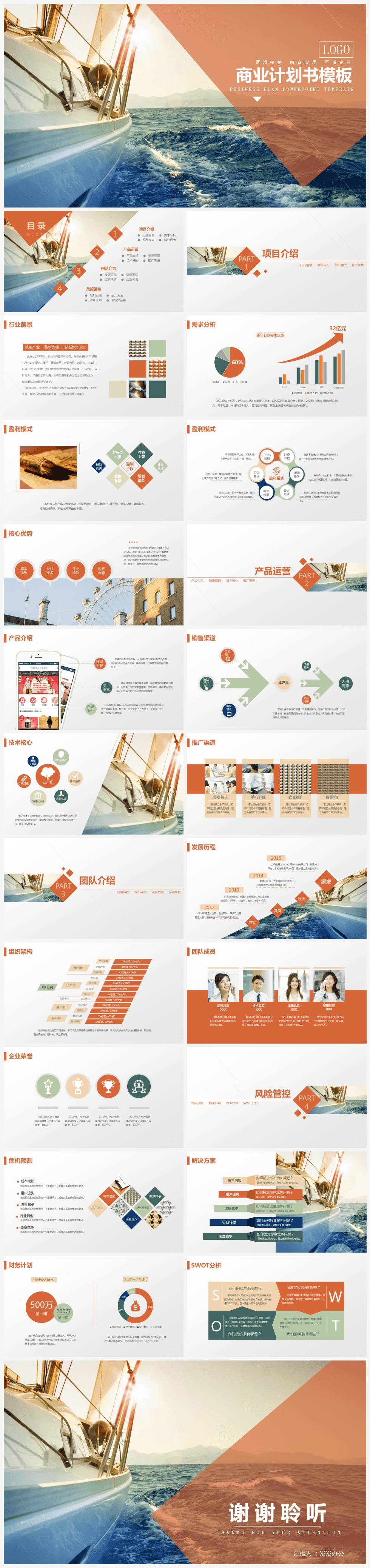 本作品内容为红色简约风商业计划书PPT模板。 格式为 pptx, 大小2MB, 页数为24,比例自定义, 请使用软件PowerPoint打开, 作品中主体文字及图片可替换修改,文字修改可直接点击文本框进行编辑,图片更改可选中图片后单击鼠标右键选择更换图片,也可根据自身需求增加和删除作品中的内容, 源文件无水印, 欢迎使用发发资源库。