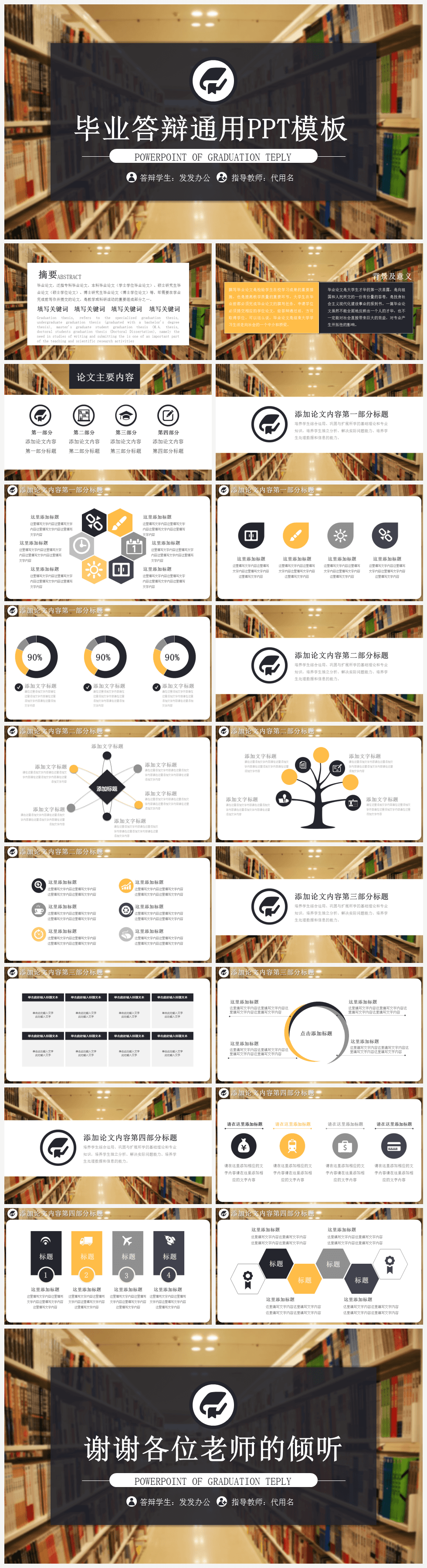 本作品内容为橙色简约风学术论文毕业答辩通用PPT模板。 格式为 pptx, 大小4MB, 页数为20,比例自定义, 请使用软件PowerPoint打开, 作品中主体文字及图片可替换修改,文字修改可直接点击文本框进行编辑,图片更改可选中图片后单击鼠标右键选择更换图片,也可根据自身需求增加和删除作品中的内容, 源文件无水印, 欢迎使用发发资源库。