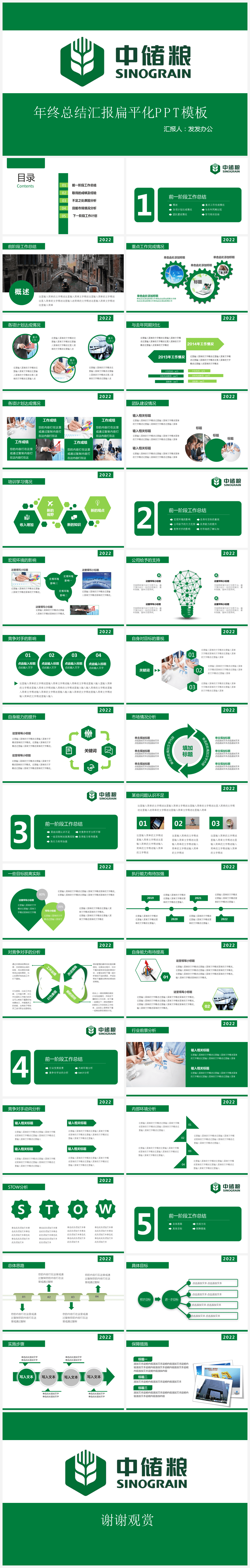 本作品内容为大气绿色简约风年终总结汇报扁平化PPT模板。 格式为 pptx, 大小3MB, 页数为34,比例16:10, 请使用软件PowerPoint打开, 作品中主体文字及图片可替换修改,文字修改可直接点击文本框进行编辑,图片更改可选中图片后单击鼠标右键选择更换图片,也可根据自身需求增加和删除作品中的内容, 源文件无水印, 欢迎使用发发资源库。