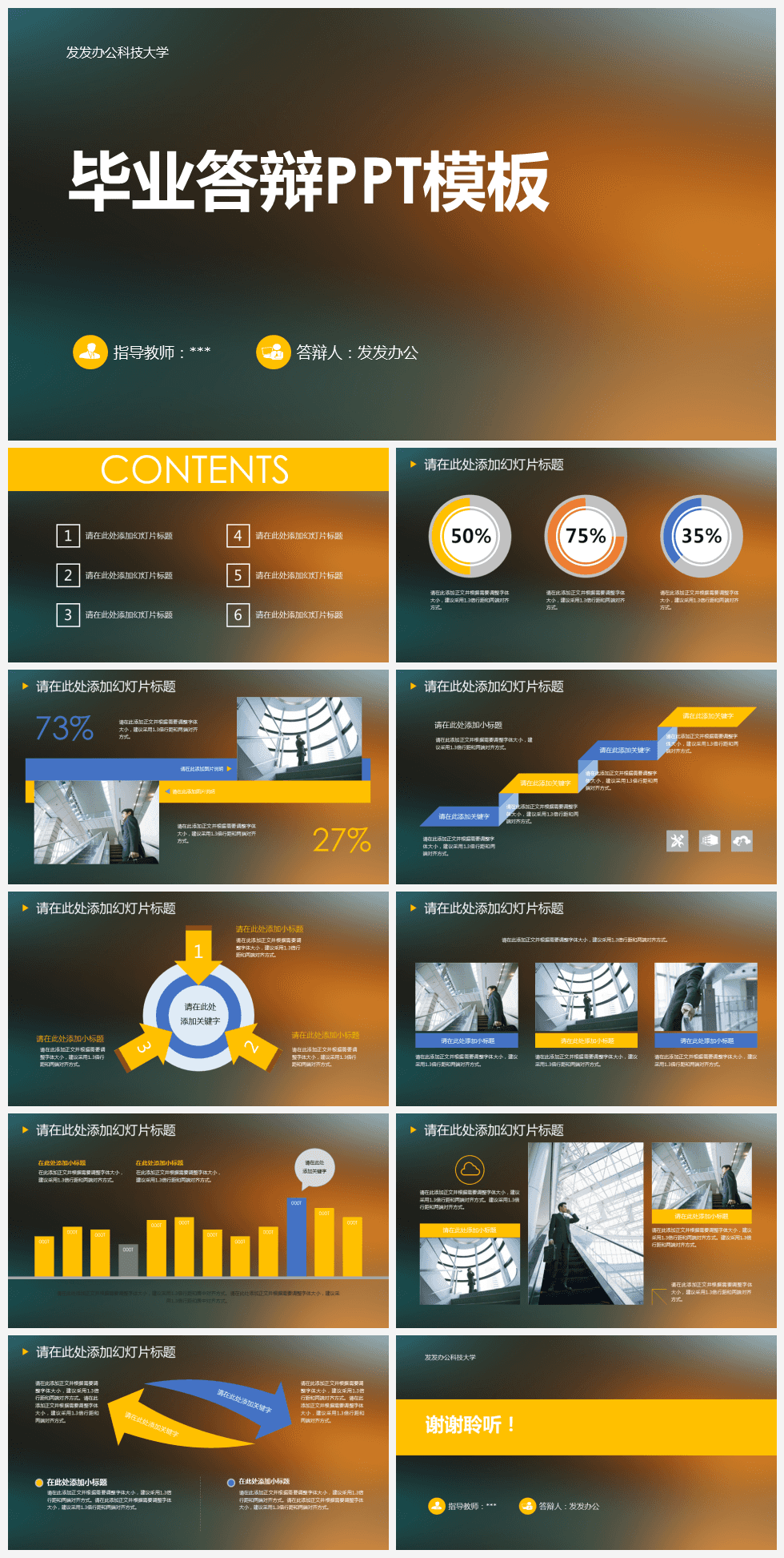 本作品内容为橙蓝半透明苹果IOS风毕业答辩通用PPT模板。 格式为 pptx, 大小1MB, 页数为11,比例自定义, 请使用软件PowerPoint打开, 作品中主体文字及图片可替换修改,文字修改可直接点击文本框进行编辑,图片更改可选中图片后单击鼠标右键选择更换图片,也可根据自身需求增加和删除作品中的内容, 源文件无水印, 欢迎使用发发资源库。