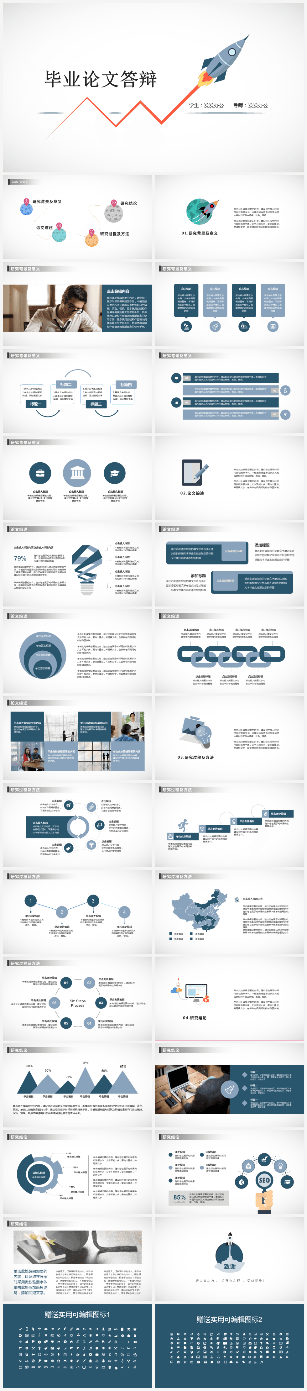 本作品内容为简约风卡通火箭毕业论文答辩PPT模板。 格式为 pptx, 大小3MB, 页数为29,比例自定义, 请使用软件PowerPoint打开, 作品中主体文字及图片可替换修改,文字修改可直接点击文本框进行编辑,图片更改可选中图片后单击鼠标右键选择更换图片,也可根据自身需求增加和删除作品中的内容, 源文件无水印, 欢迎使用发发资源库。 资源下载此资源下载价格为8.8F币,VIP免费,请先登录