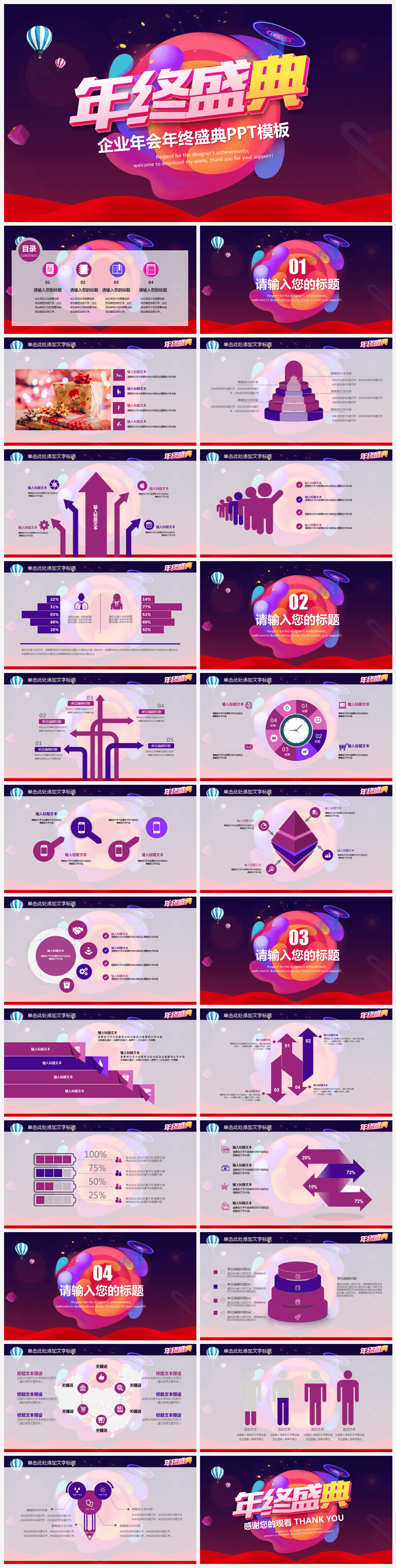 本作品内容为多彩梦幻卡通风企业年会年终盛典PPT模板。 格式为 pptx, 大小30MB, 页数为25,比例自定义, 请使用软件PowerPoint打开, 作品中主体文字及图片可替换修改,文字修改可直接点击文本框进行编辑,图片更改可选中图片后单击鼠标右键选择更换图片,也可根据自身需求增加和删除作品中的内容, 源文件无水印, 欢迎使用发发资源库。