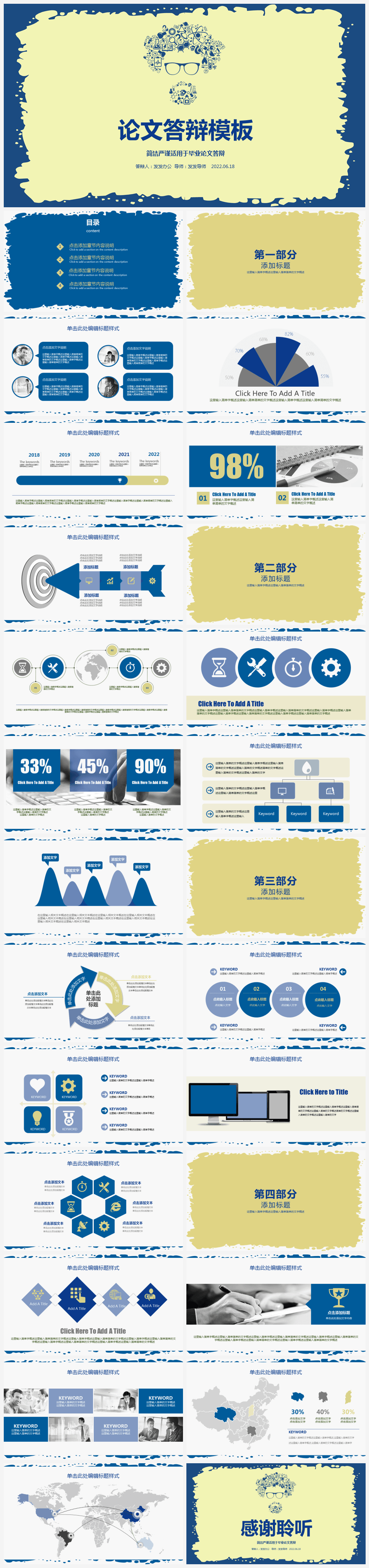 本作品内容为卡通风严谨实用毕业论文答辩PPT模板。 格式为 pptx, 大小3MB, 页数为27,比例自定义, 请使用软件PowerPoint打开, 作品中主体文字及图片可替换修改,文字修改可直接点击文本框进行编辑,图片更改可选中图片后单击鼠标右键选择更换图片,也可根据自身需求增加和删除作品中的内容, 源文件无水印, 欢迎使用发发资源库。 资源下载此资源下载价格为8.8F币,VIP免费,请先登录