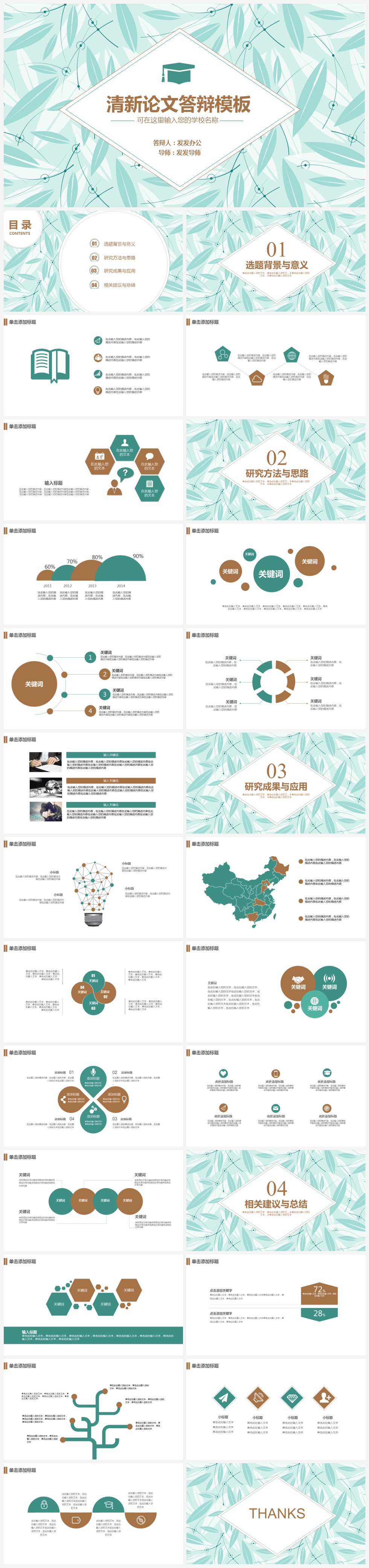 本作品内容为小清新棕蓝论文答辩PPT模板。 格式为 pptx, 大小2MB, 页数为27,比例自定义, 请使用软件PowerPoint打开, 作品中主体文字及图片可替换修改,文字修改可直接点击文本框进行编辑,图片更改可选中图片后单击鼠标右键选择更换图片,也可根据自身需求增加和删除作品中的内容, 源文件无水印, 欢迎使用发发资源库。 资源下载此资源下载价格为8.8F币,VIP免费,请先登录