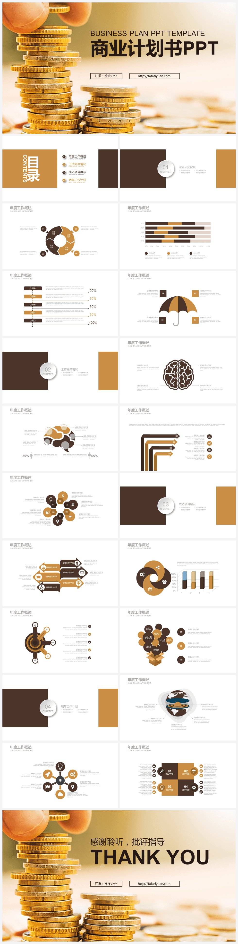 本作品内容为黑金欧美风创意圆圈商业计划书商务PPT模板。 格式为 pptx, 大小7MB, 页数为22,比例自定义, 请使用软件PowerPoint打开, 作品中主体文字及图片可替换修改,文字修改可直接点击文本框进行编辑,图片更改可选中图片后单击鼠标右键选择更换图片,也可根据自身需求增加和删除作品中的内容, 源文件无水印, 欢迎使用发发资源库。
