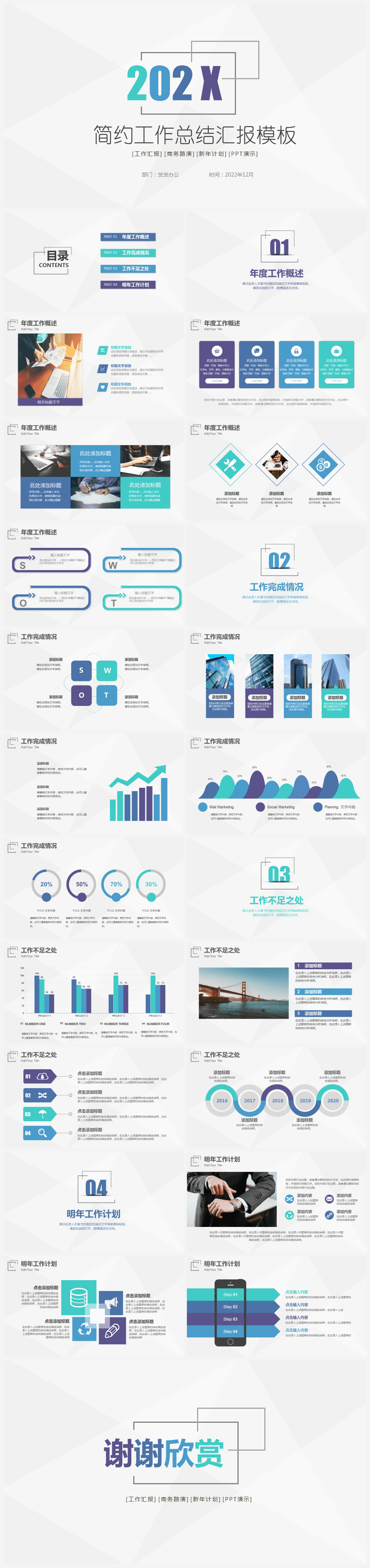 - 小清新极简淡蓝工作总结商务通用PPT模板 2022-12-07