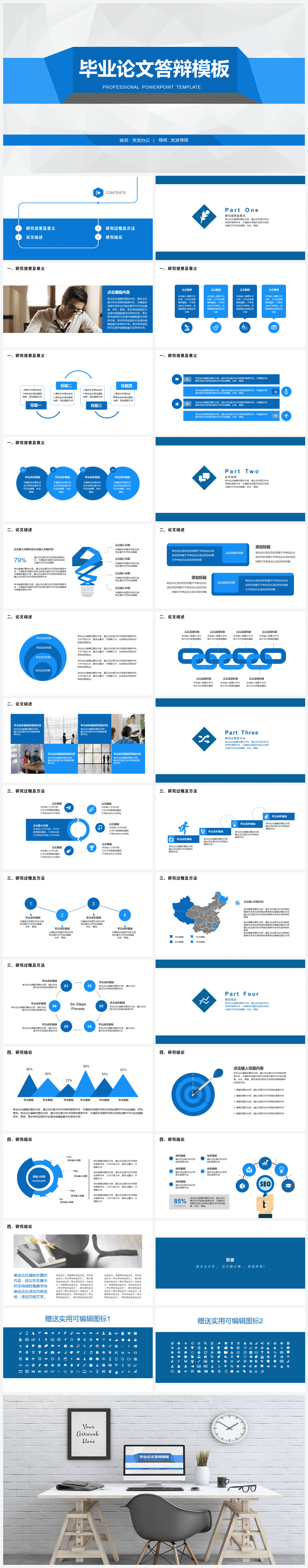 本作品内容为蓝色简约风三角形背景毕业论文答辩PPT模板。 格式为 pptx, 大小11MB, 页数为30,比例自定义, 请使用软件PowerPoint打开, 作品中主体文字及图片可替换修改,文字修改可直接点击文本框进行编辑,图片更改可选中图片后单击鼠标右键选择更换图片,也可根据自身需求增加和删除作品中的内容, 源文件无水印, 欢迎使用发发资源库。