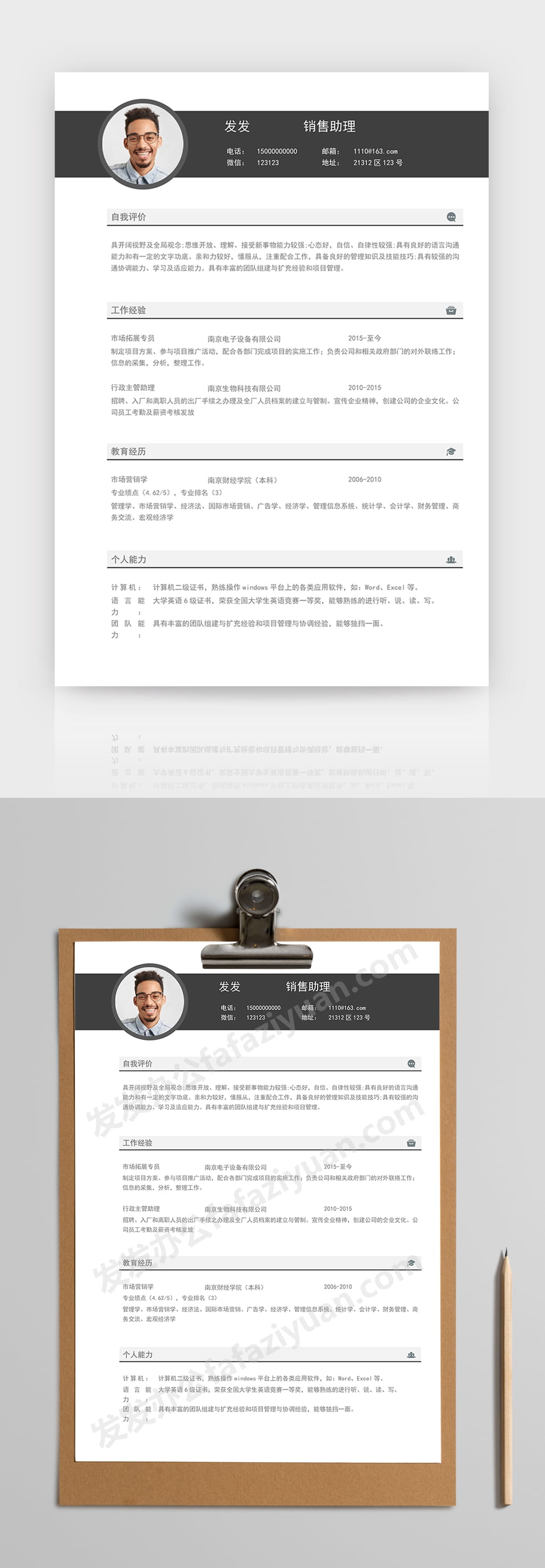 本作品内容为灰色市场销售求职简历word简历, 格式为 docx, 大小1 MB, 页数为1, 请使用软件Word打开, 作品中主体文字及图片可替换修改,文字修改可直接点击文本框进行编辑,图片更改可选中图片后单击鼠标右键选择更换图片,也可根据自身需求增加和删除作品中的内容, 源文件无水印, 欢迎使用发发资源库。
