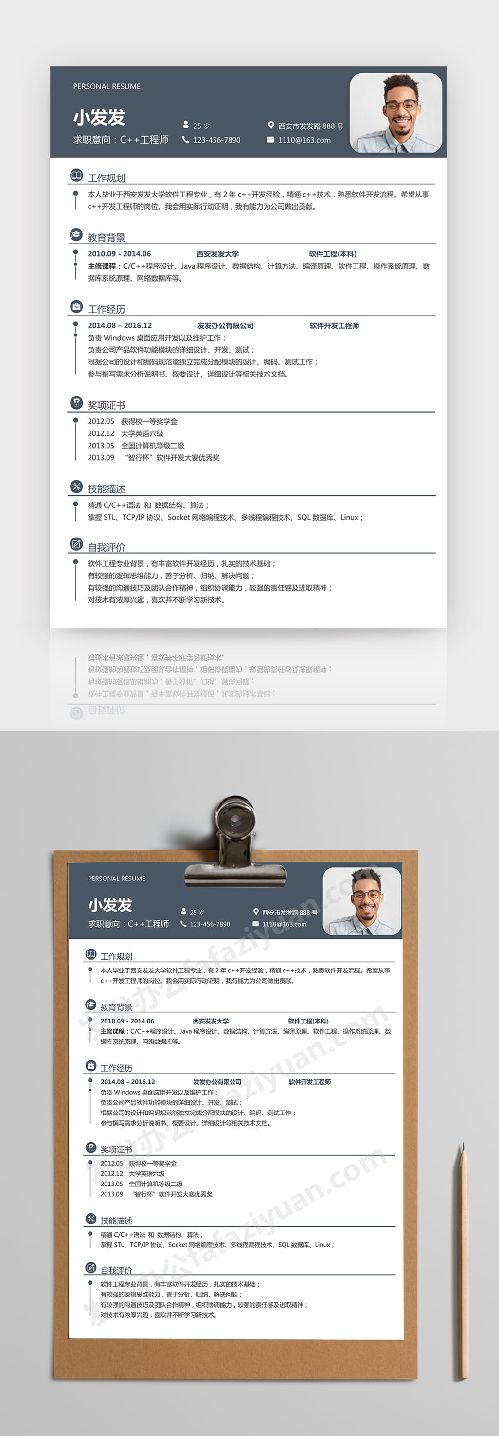 本作品内容为c++工程师经典风格求职简历模板蓝灰色word简历模板, 格式为 docx, 大小1 MB, 页数为1, 请使用软件Word打开, 作品中主体文字及图片可替换修改,文字修改可直接点击文本框进行编辑,图片更改可选中图片后单击鼠标右键选择更换图片,也可根据自身需求增加和删除作品中的内容, 源文件无水印, 欢迎使用发发资源库。