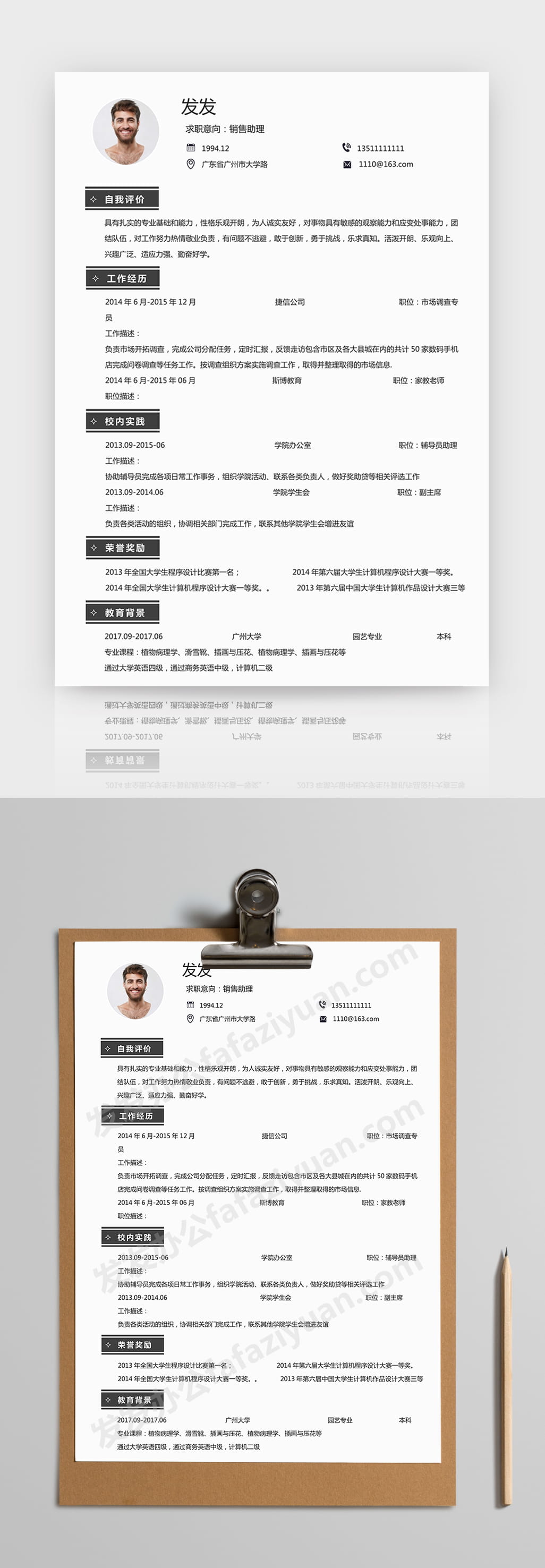 本作品内容为简约风销售求职简历word简历, 格式为 docx, 大小1 MB, 页数为1, 请使用软件Word打开, 作品中主体文字及图片可替换修改,文字修改可直接点击文本框进行编辑,图片更改可选中图片后单击鼠标右键选择更换图片,也可根据自身需求增加和删除作品中的内容, 源文件无水印, 欢迎使用发发资源库。