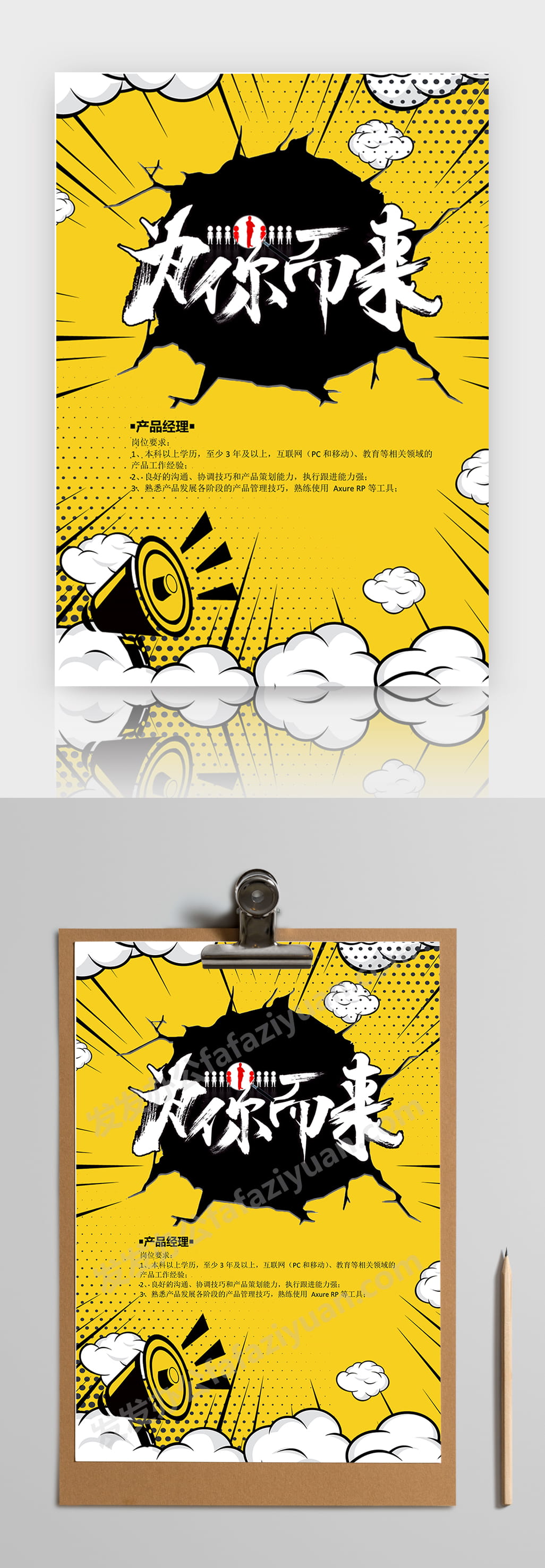 本作品内容为橙色酷炫卡通风招聘海报Word海报通用模板, 格式为 docx, 大小1MB, 页数为1, 请使用软件Word打开, 作品中主体文字及图片可替换修改,文字修改可直接点击文本框进行编辑,图片更改可选中图片后单击鼠标右键选择更换图片,也可根据自身需求增加和删除作品中的内容, 源文件无水印, 欢迎使用发发资源库。 资源下载此资源下载价格为8.8F币,VIP免费,请先登录