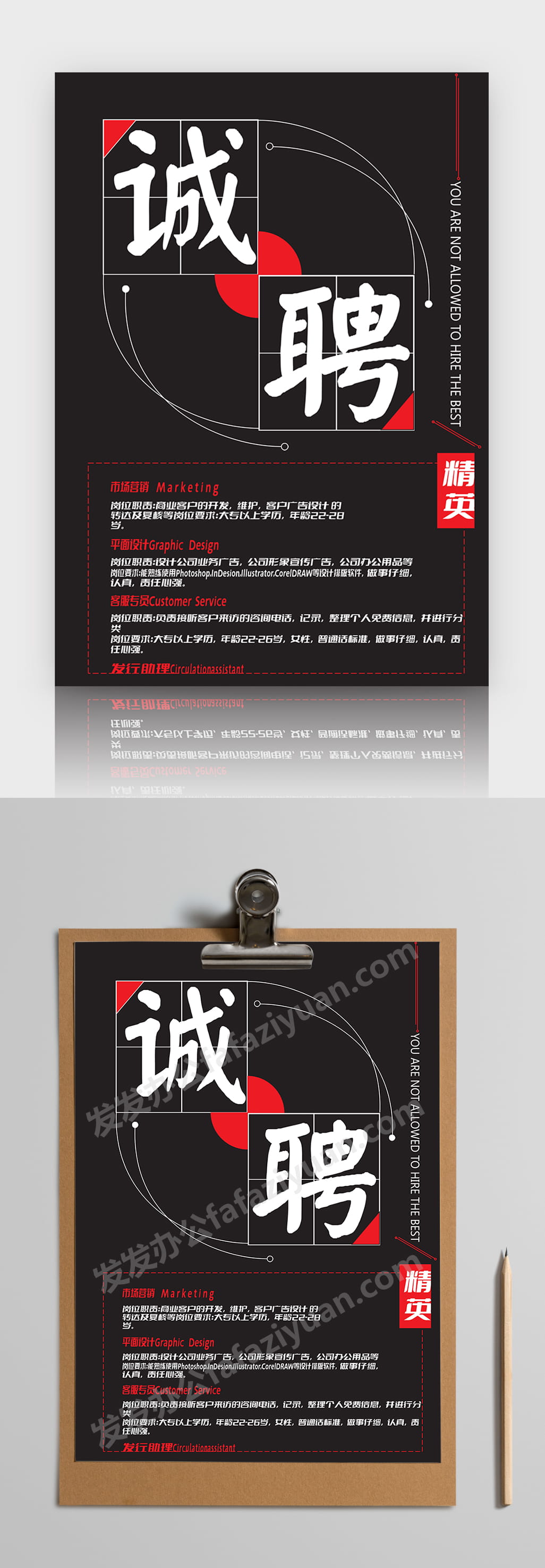 本作品内容为黑红创意线条招聘海报Word招聘模板, 格式为 docx, 大小1MB, 页数为1, 请使用软件Word打开, 作品中主体文字及图片可替换修改,文字修改可直接点击文本框进行编辑,图片更改可选中图片后单击鼠标右键选择更换图片,也可根据自身需求增加和删除作品中的内容, 源文件无水印, 欢迎使用发发资源库。