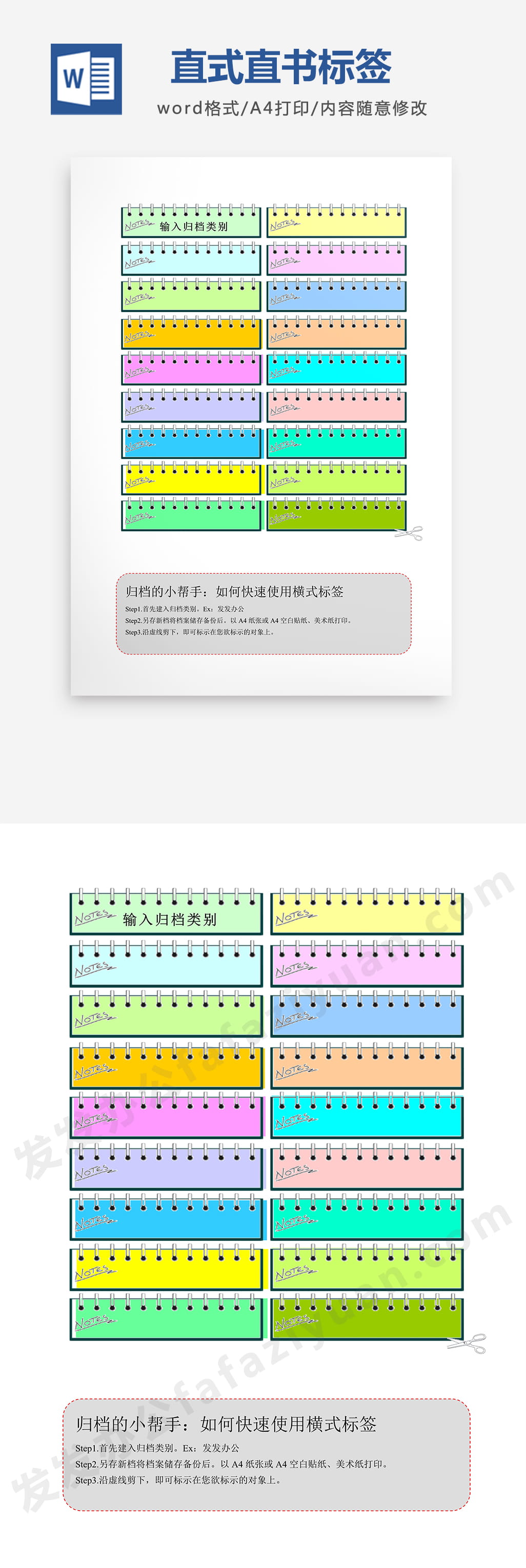 本作品内容为直式直书标签Word设计, 格式为 docx, 大小1 MB, 页数为1, 请使用软件Word打开, 作品中主体文字及图片可替换修改,文字修改可直接点击文本框进行编辑,图片更改可选中图片后单击鼠标右键选择更换图片,也可根据自身需求增加和删除作品中的内容, 源文件无水印, 欢迎使用发发资源库。