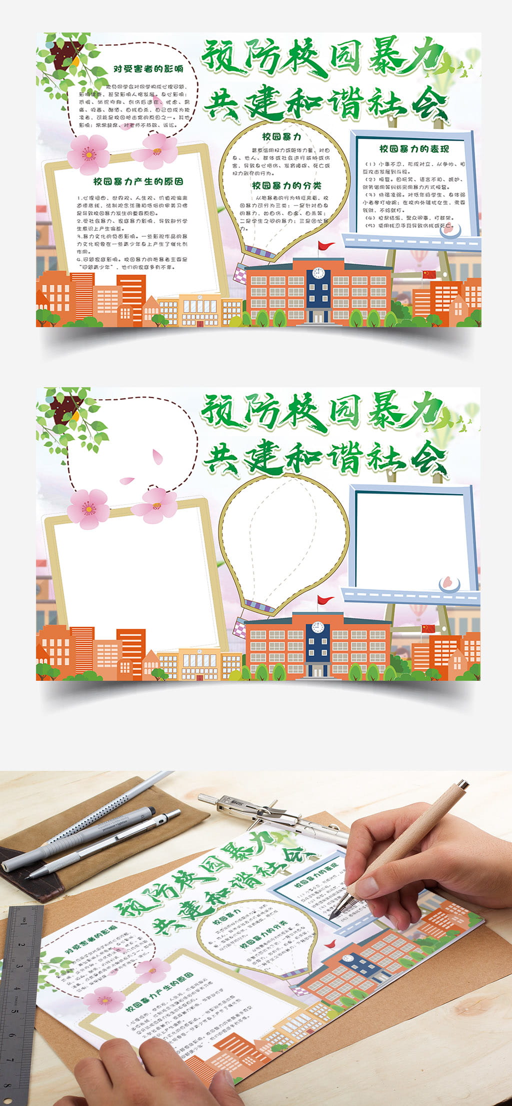- 预防校园暴力共建和谐社会手抄报Word模板 2023-01-16