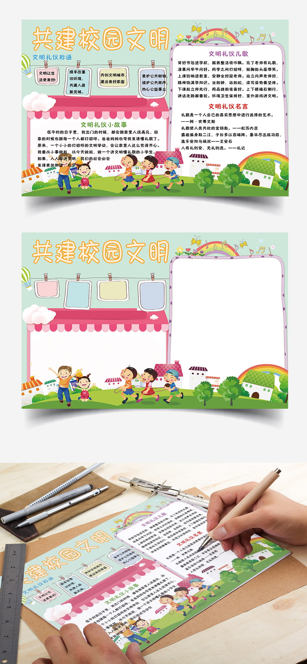 - 校园文明礼仪标语电子小报手抄报Word模板 2023-01-16