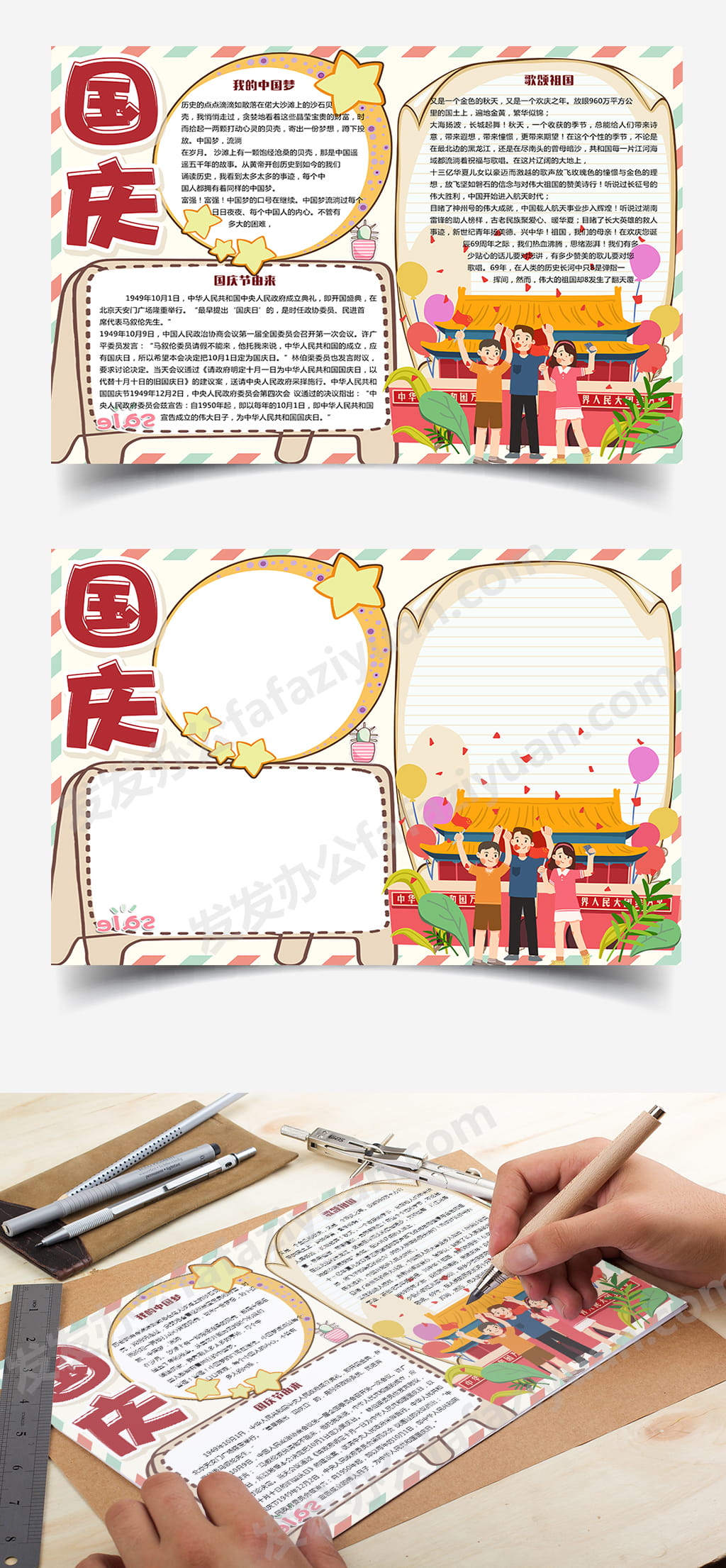 本作品内容为小学生国庆节手抄报Word小报手抄报模板, 格式为 doc, 大小5MB, 页数为1, 请使用软件Word打开, 作品中主体文字及图片可替换修改,文字修改可直接点击文本框进行编辑,图片更改可选中图片后单击鼠标右键选择更换图片,也可根据自身需求增加和删除作品中的内容, 源文件无水印, 欢迎使用发发资源库。