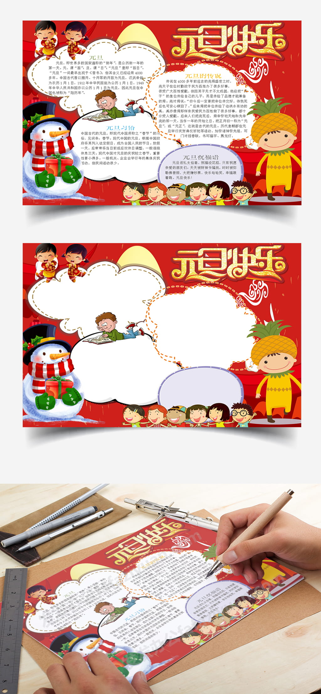 - 学生元旦手抄报Word电子小报模板 2023-01-20