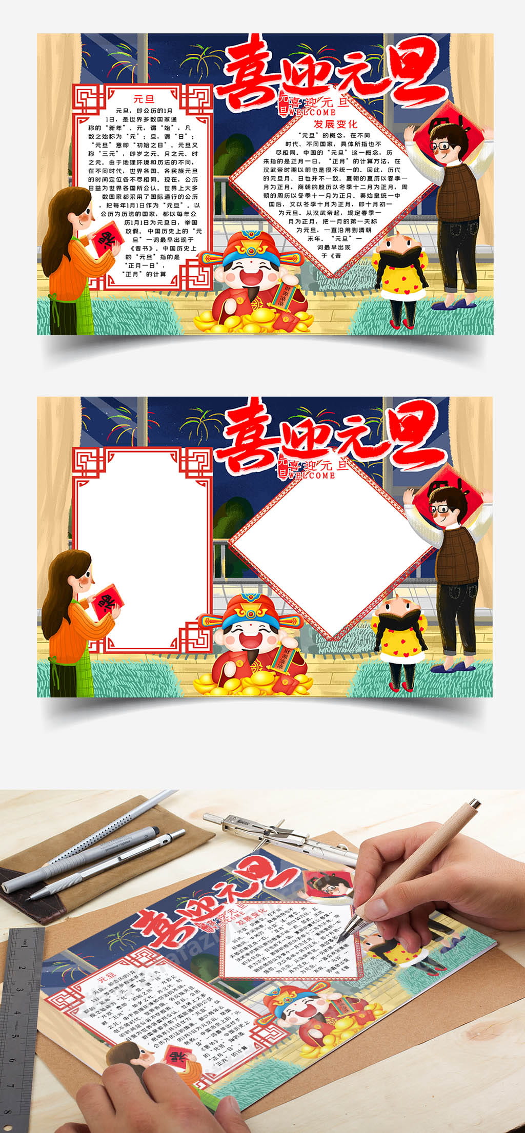 本作品内容为喜迎元旦学生手抄报Word小报模板, 格式为 docx, 大小5MB, 页数为1, 请使用软件Word打开, 作品中主体文字及图片可替换修改,文字修改可直接点击文本框进行编辑,图片更改可选中图片后单击鼠标右键选择更换图片,也可根据自身需求增加和删除作品中的内容, 源文件无水印, 欢迎使用发发资源库。 资源下载此资源下载价格为8.8F币,VIP免费,请先登录